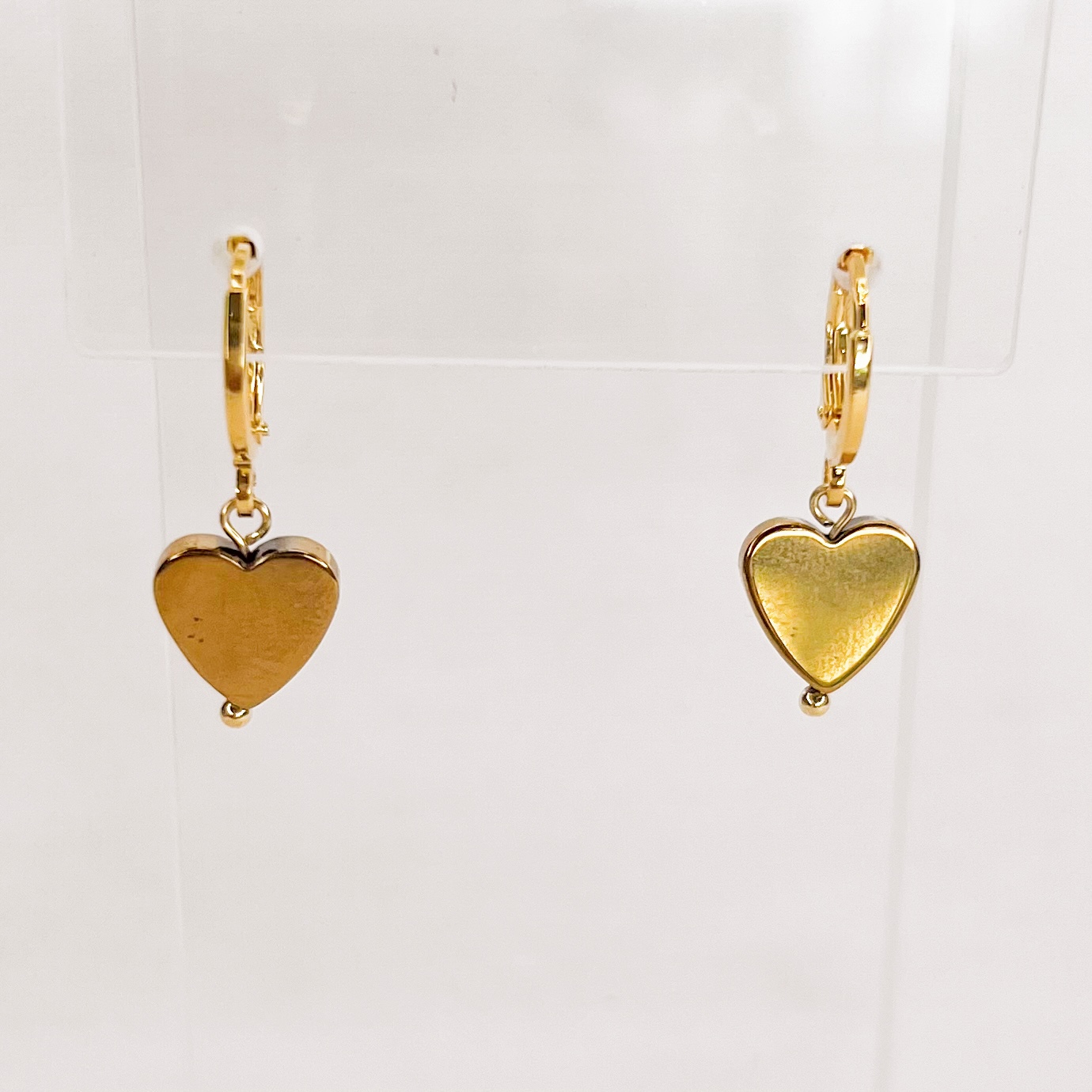 Argola c/ Pingente de Coração de Hematita Dourado Gold